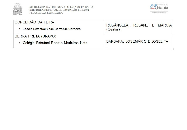 na rede estadual de educação da Bahia, que poderá ser realizada em toda unidade